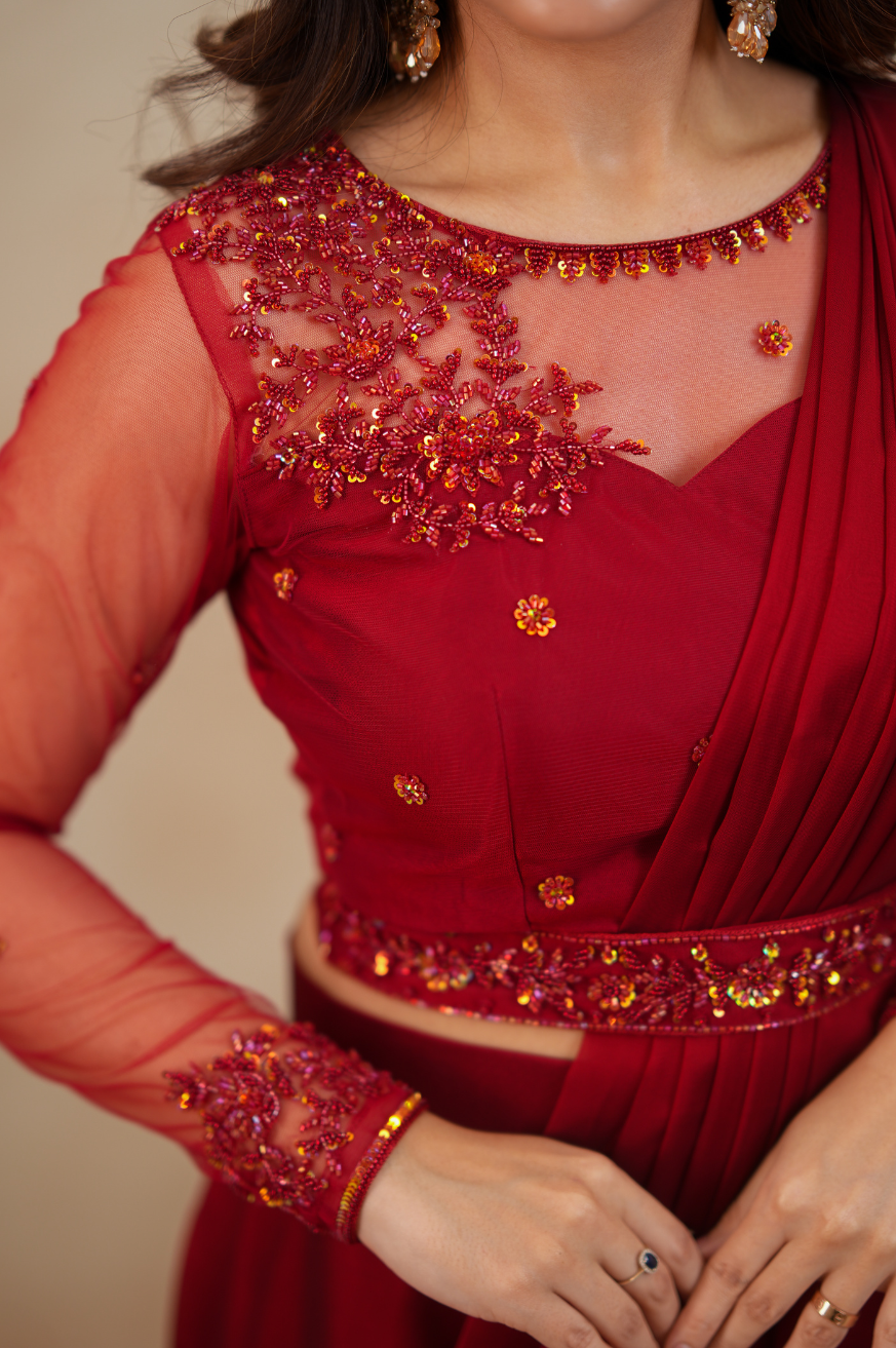 Embellished full-sleeve blouse with handwork detailing on shoulders