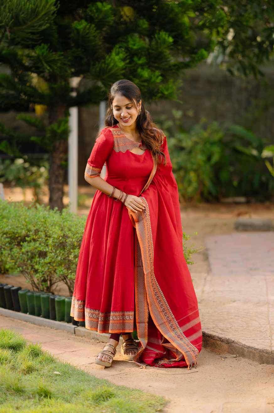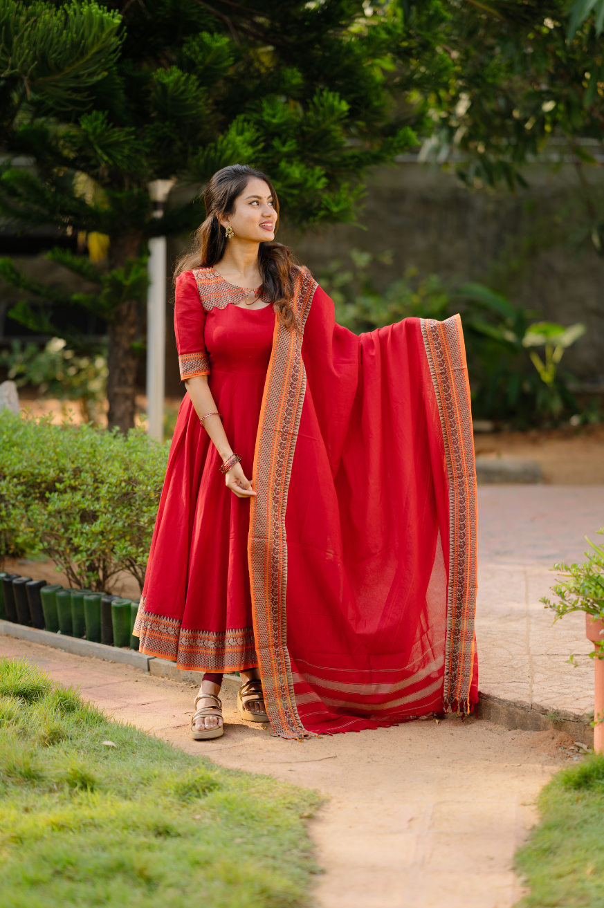 Premium Cotton Anarkali with Dupatta
